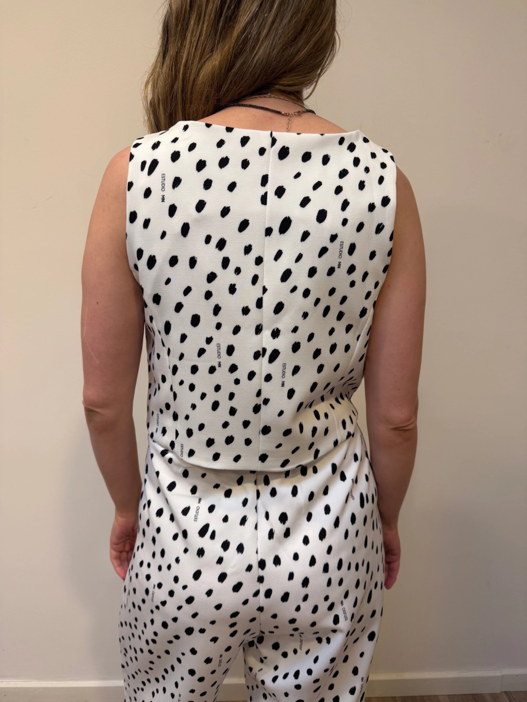 El Chaleco Sara esta confeccionado en crepe sastrero. En el delantero posee bolsillos sastreros. Esta integramente forrado en tafeta premium. Las estampas fueron especialmente diseñadas para la colección.